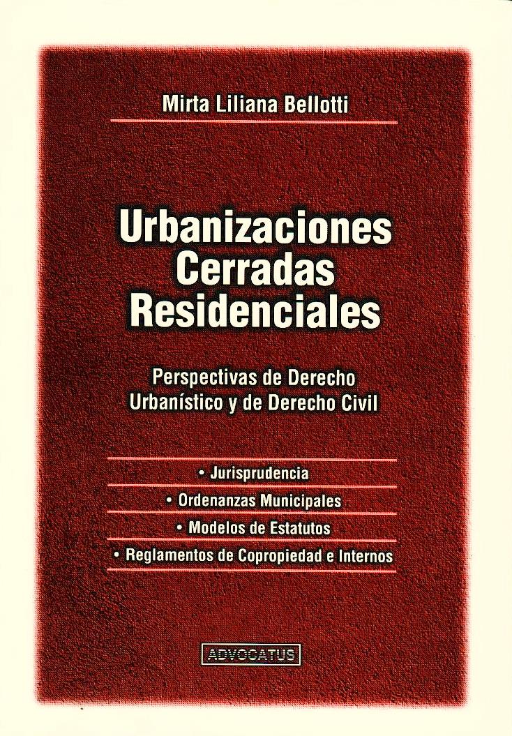 La fragmentación espacial de la ciudad. La segregación social. El derecho urbanístico. Normas municipales de la ciudad de Córdoba, Malvinas Argentinas, Rosario, Funes, Luján de Cuyo. El instituto jurídico de derecho civil aplicable. Jurisprudencia. Normas aplicables. Modelos de estatutos y reglamentos internos de las urbanizaciones cerradas residenciales usados en las jurisdicciones estudiadas. Bibliografía.